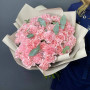 На фото букет из 55 розовых гвоздик. В составе: гвоздика 55 шт, крафт-бумага 1 шт, атласная лента 1 шт, . Все цветы свежие и ароматные, букет красиво оформлен и отлично подходит для подарка. Доступна доставка цветов или самовывоз.