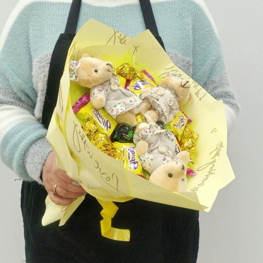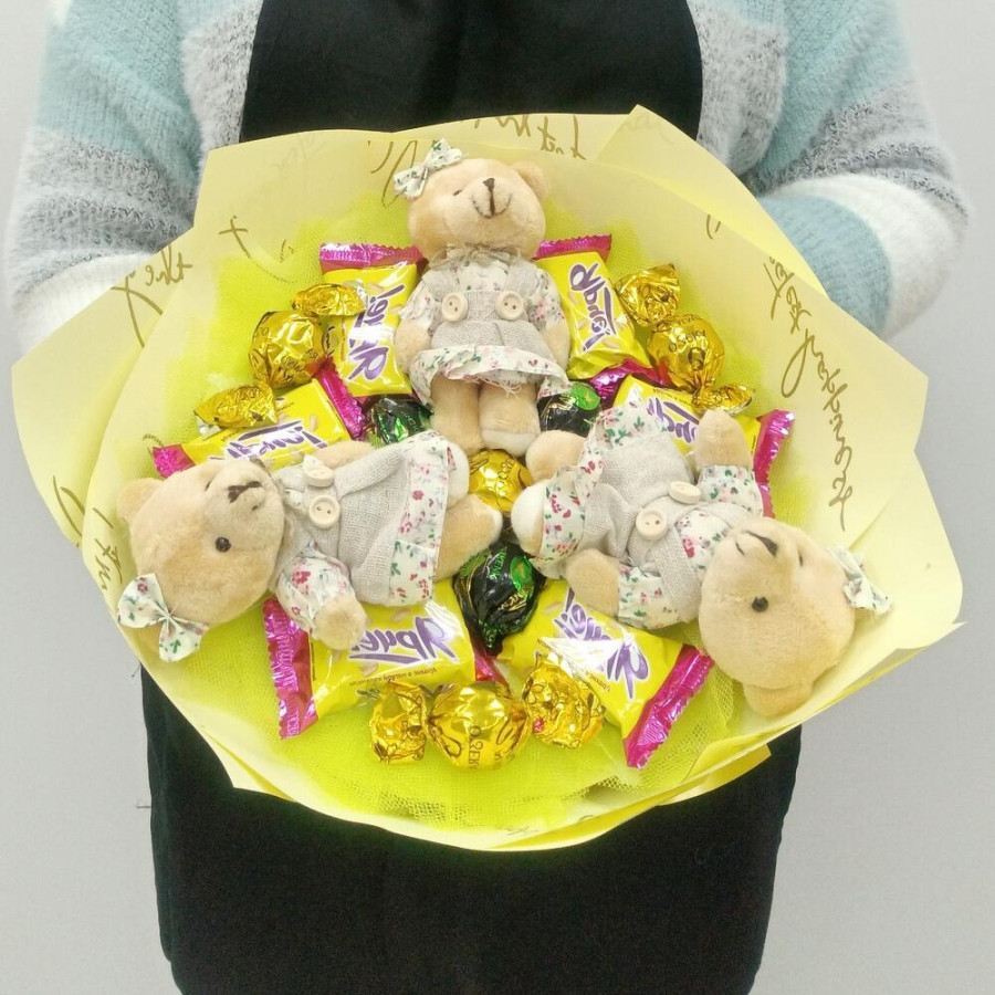 Букет из игрушек медвежат и конфет в Нерюнгри